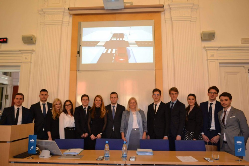 Tekmovalci so se tako srečali z vrsto pravnih vprašanj, med drugim tudi glede mednarodne pristojnosti, saj je v simulaciji šlo za tujega izdelovalca samovozečega vozila, prometna nesreča oz. škodni dogodek pa se je pripetil v Mariboru, glede aktivne in pasivne legitimacije, sosporništva, odškodninske odgovornosti in njene razbremenitve ter morebitne soodgovornosti oškodovanke. Vožnja v načinu avtopilot bi glede na trenutno ureditev v slovenskem pravu lahko bila protipravna (voznik mora imeti vozilo cel čas pod nadzorom), se pa je tekmovalce spodbujalo tudi k razmišljanju v smeri odgovornosti umetne inteligence. Ker področje ni izrecno pravno regulirano, je pravna argumentacija tekmovalcev zahtevala ne samo znanje prava, temveč med drugim tudi poznavanje trenutnih zmožnosti informacijskih tehnologij.